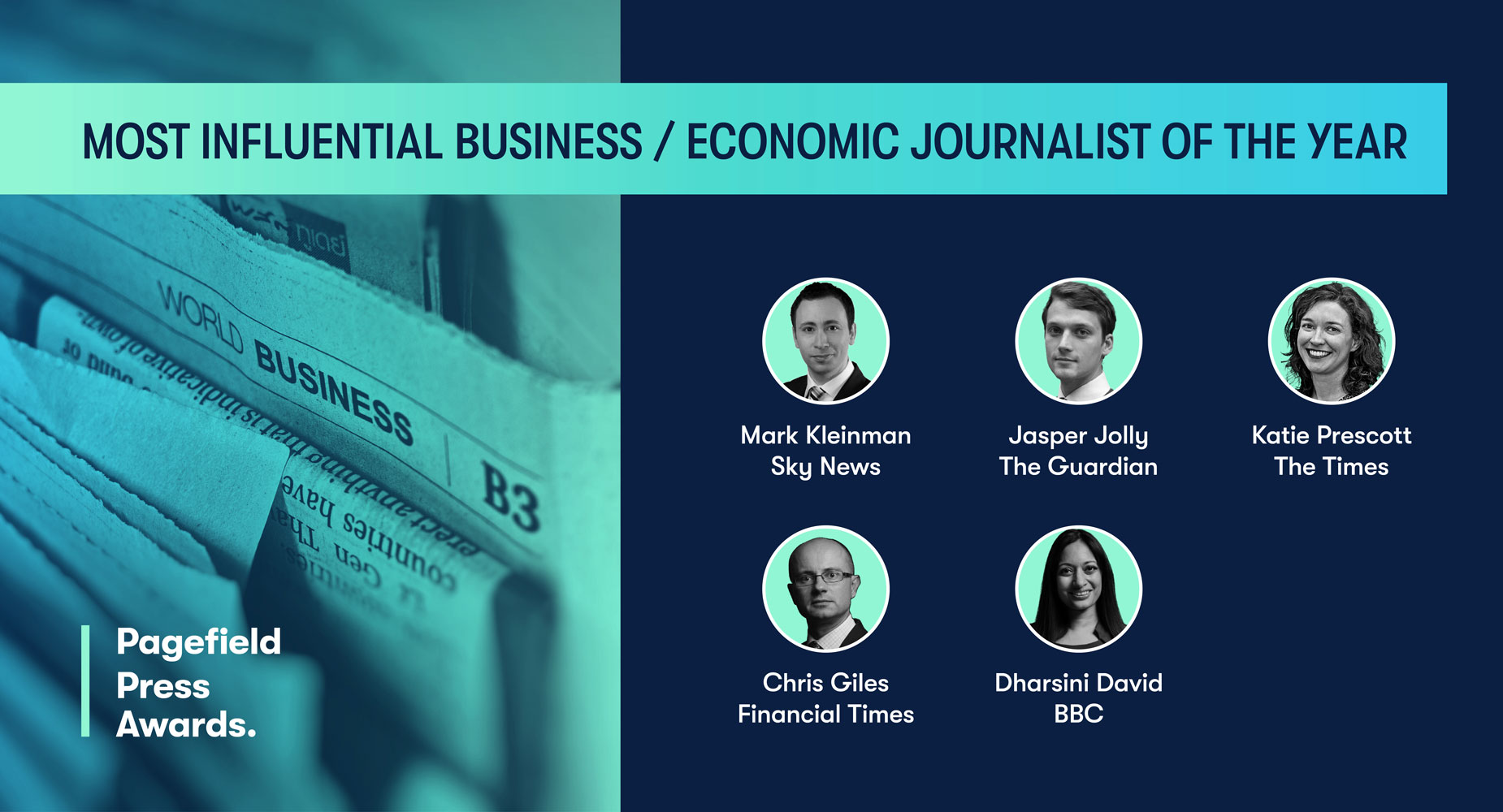 The winners will be announced at Pagefield’s autumn drinks reception on Tuesday 28th November. The five shortlisted nominees are: