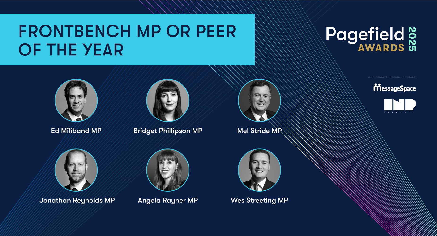 The Pagefield Awards have long celebrated the individuals shaping the UK’s political and media landscape, and our ‘Frontbench MP or Peer of the Year’ category continues this tradition by recognising those who have made a significant impact from the government or opposition benches.
